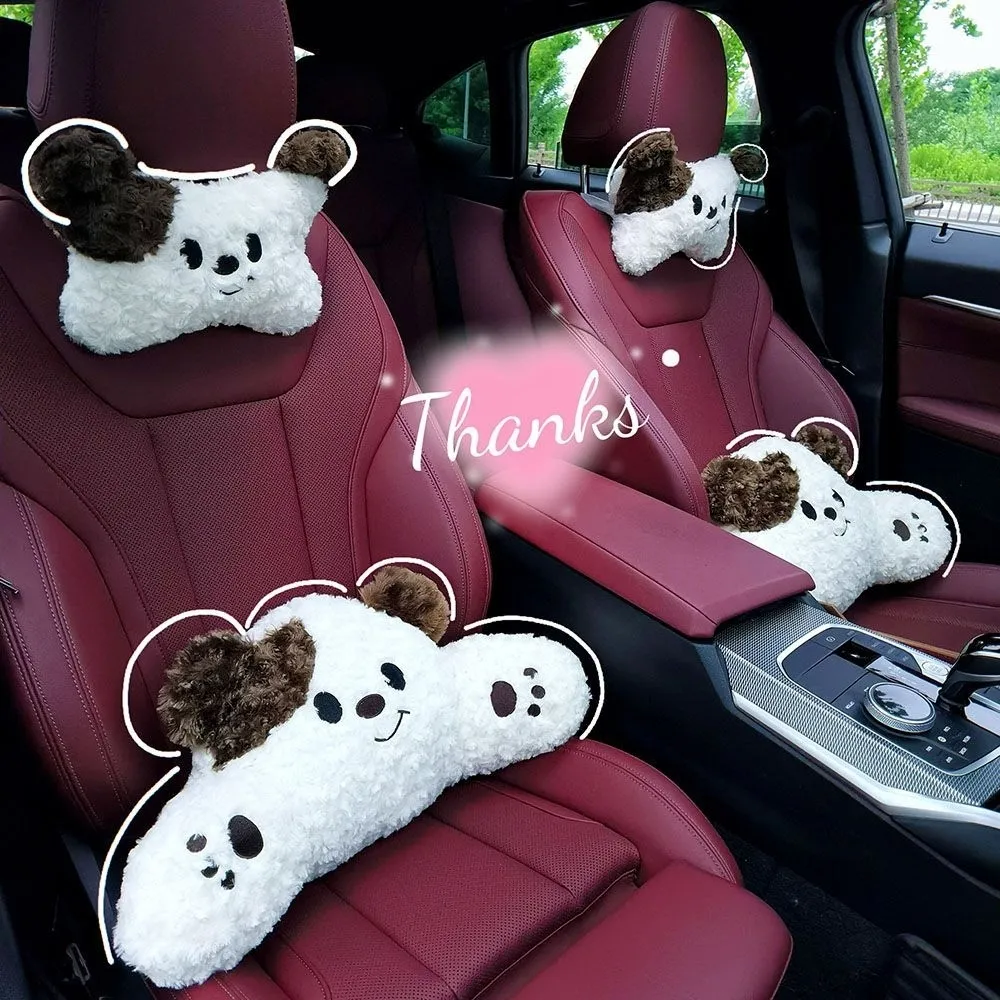 Car Pillow Automotive Headrest Neck Support Lumbar Cushion Lovable Puppy Dog Seat Back Cushion Car Interior Cushion Vehicle-Mounted Pair