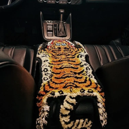 Car Center Console Armrest Box Mat Tibet Tiger Pattern Plush Car Interior Dustproof Protective Cover Universal Tiger Themed Decoration